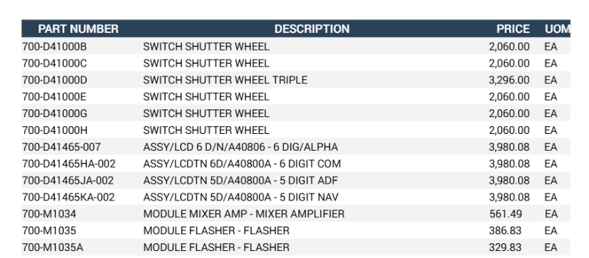Would you happen to know which component of the communication system corresponds to part number 700-D41000B, and furthermore, how this component differs from the one identified by part number 700-D41000G?