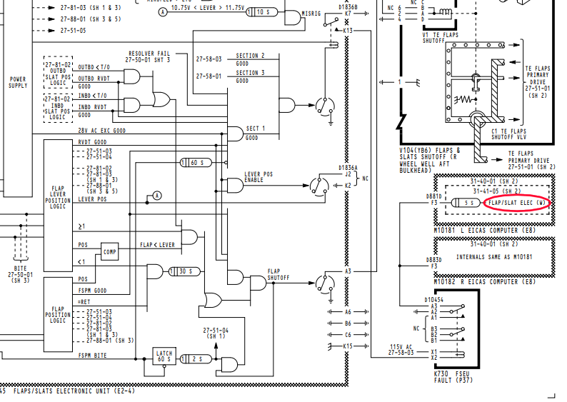 Leach relay P/N BACR13CJ2 causing a cycling "FLAP/SLAT ELEC" warning on the lower EICAS display.