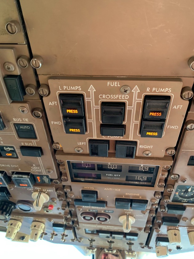 This will cause the left forward "Press" light to come on and a EICAS ECS/MSG of DC Fuel Pump.