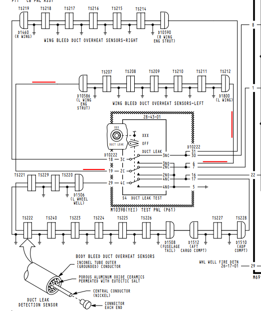 We had another problem similar to this one dealing with the left bleed air system. In the case of this particular aircraft, the overheat switches were part of a different warning system so we were dealing with just the loops.