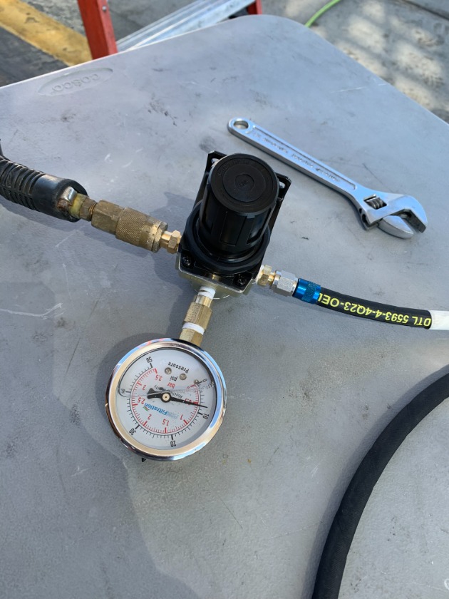 We tried the regulator on its own with compressor air and dialed it up to 8 PSI. We could have gone higher, but for our find, 8 PSI was enough.
